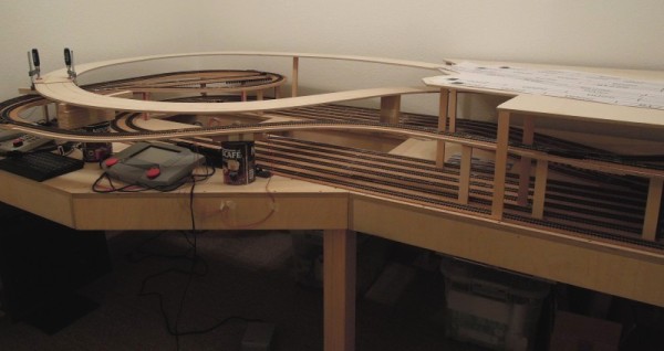 ausgelegt. Hinten ist der Schattenbahnhof der Nebenstrecke zu sehen. Im