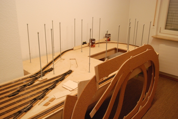 noch mit Kork beklebt werden. Es bleibt noch viel zu tun, bis die Loks im